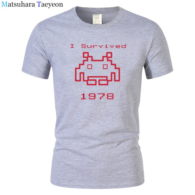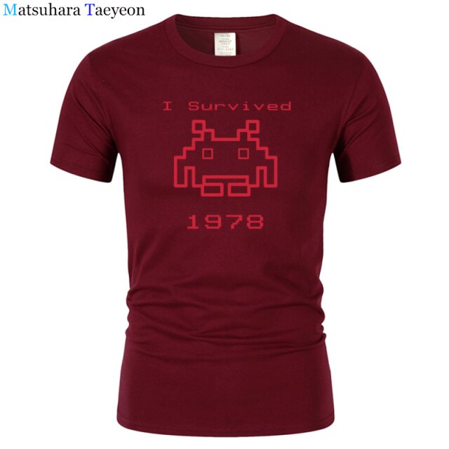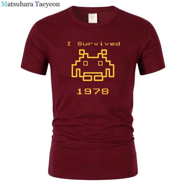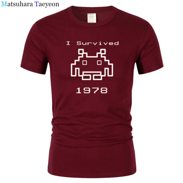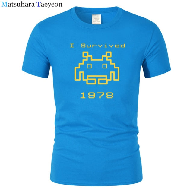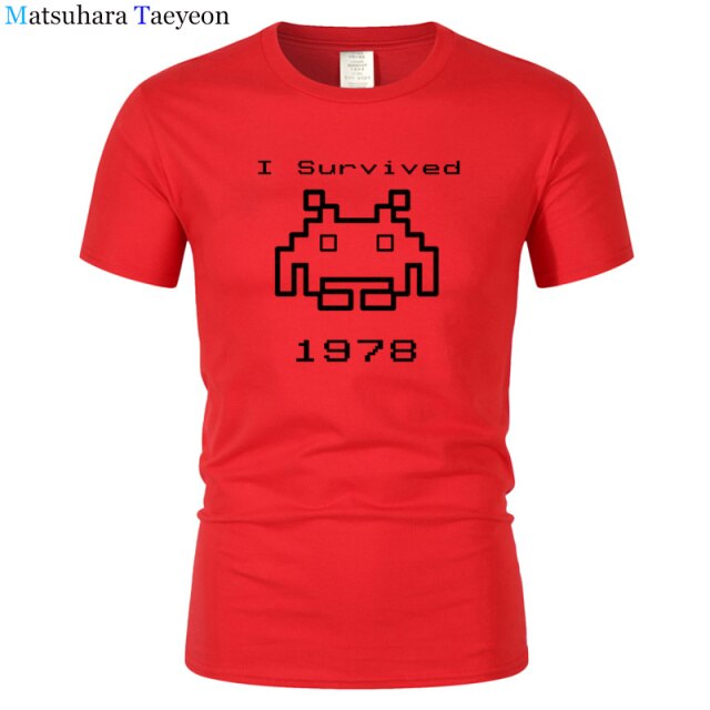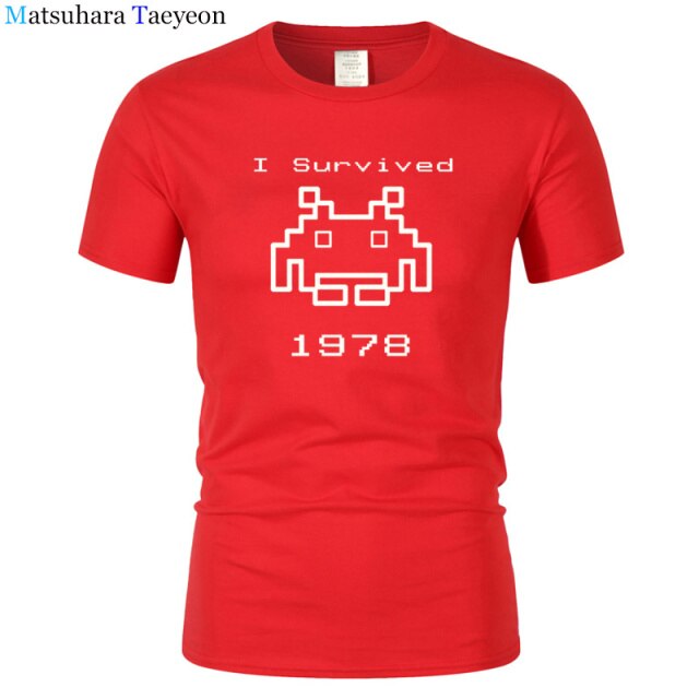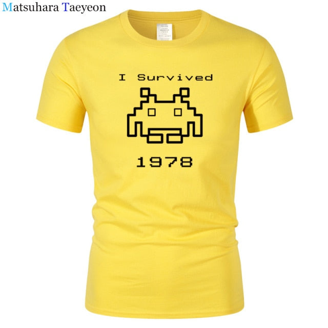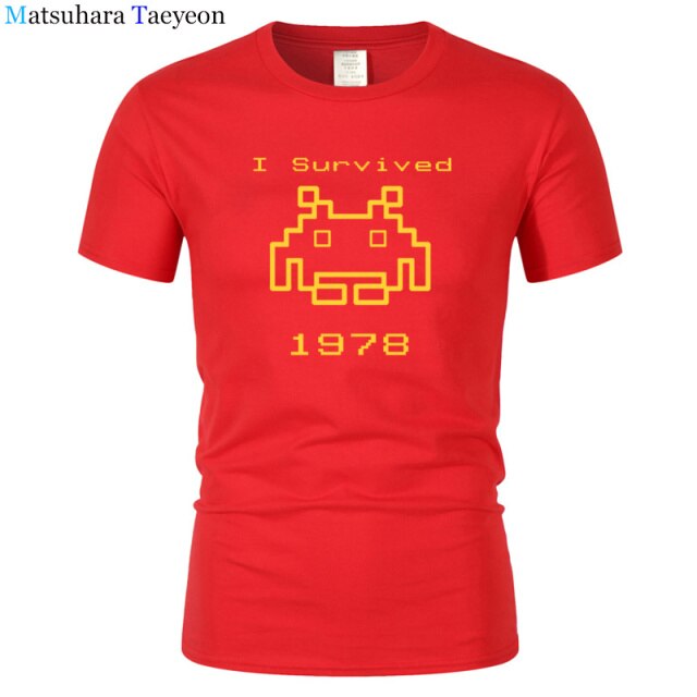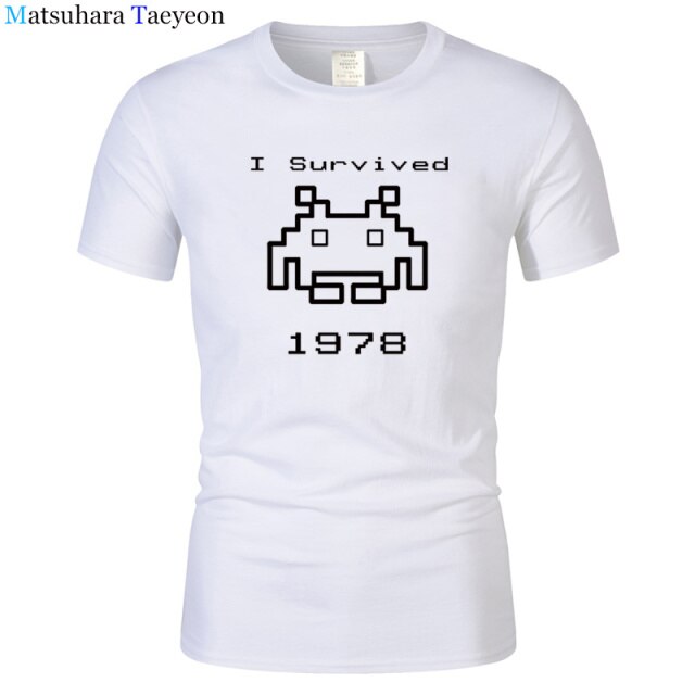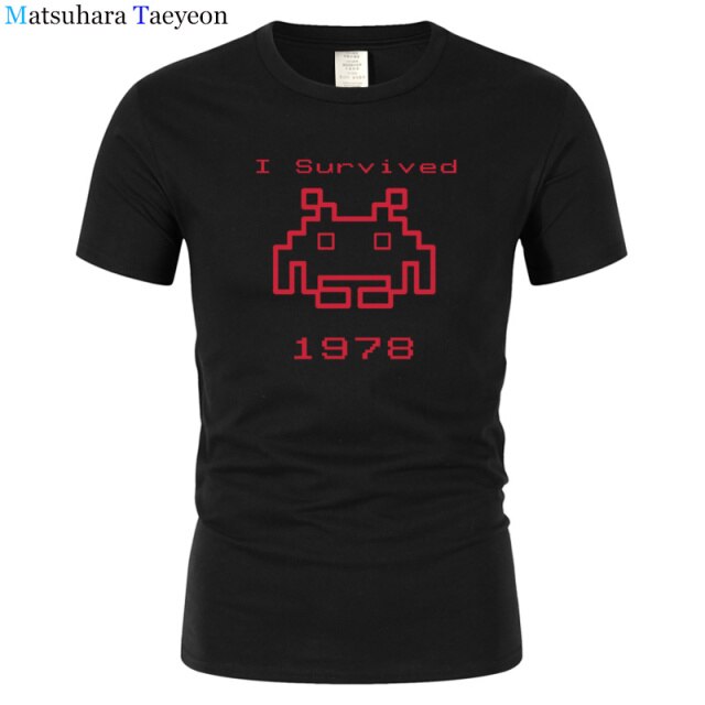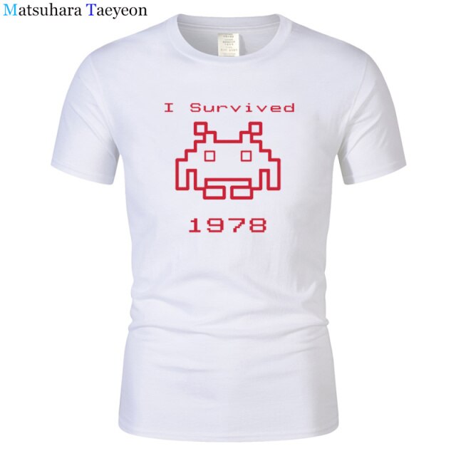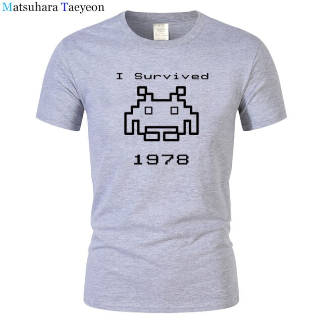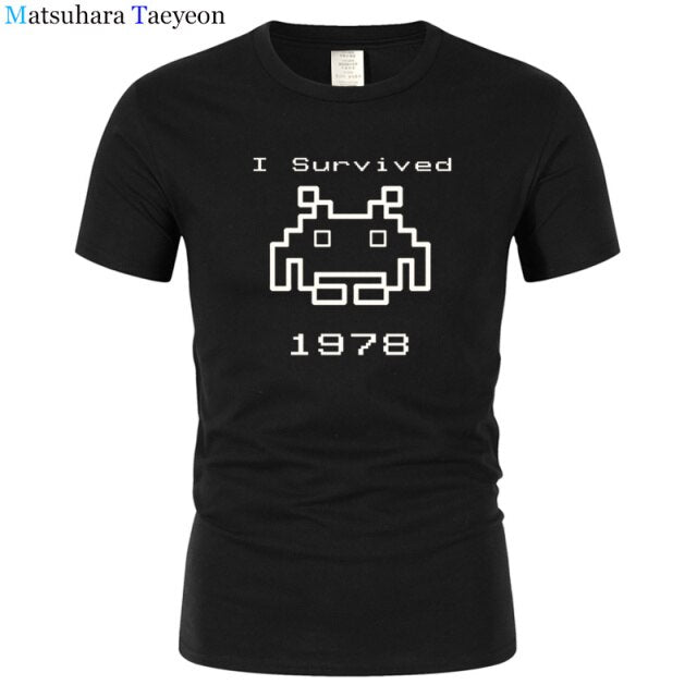 I Survived 1978 Men Tops Tees Gaming T Shirts video game Space Invaders space alien geek nerd pop culture atari Novel t137